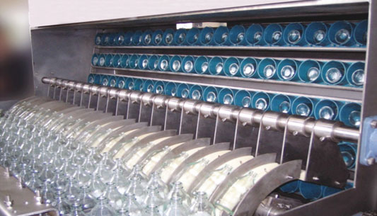 另配的上、下卸瓶機(jī)采用了最新的專(zhuān)利技術(shù),推瓶速度快且不倒瓶,自動(dòng)化程度高。