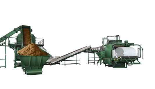 青貯飼料稱重配料→攪拌混合→自動(dòng)進(jìn)料→壓縮成捆→預(yù)包膜→物料輸送→最終包膜→成品輸出