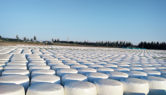 將收割粉碎的飼草料(莧草,玉米秸稈)和麥麩分別投入料倉即可實(shí)現(xiàn)智能、自動(dòng)化混料。混料完成后,通過智能程序控制系統(tǒng),可一鍵操作壓縮、打包、包膜等程序,快速將粉碎的飼草料變成成品草包。草料被壓實(shí)裹包后,處于密實(shí)、低氧的狀態(tài)下。經(jīng)過1—2個(gè)月時(shí)間,就可發(fā)酵獲得優(yōu)質(zhì)的飼料,可露天存放2-3年。
